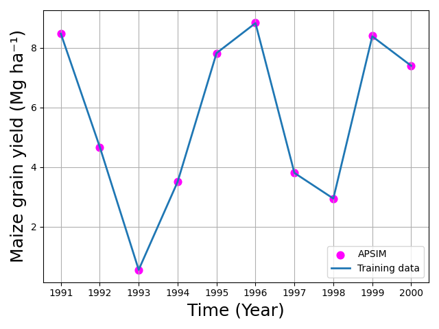 plt.ylabel("Maize grain yield (Mg ha⁻¹)", fontsize=18)